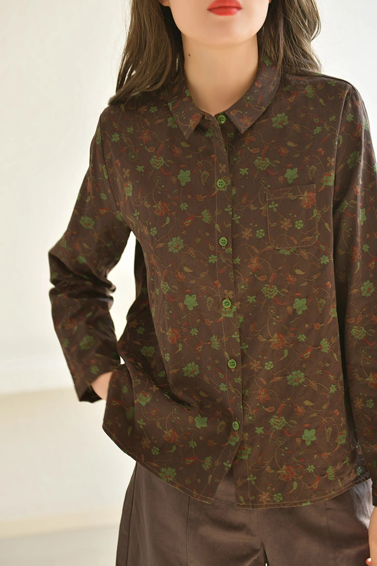 মহিলাদের ফ্লোরাল প্রিন্ট নৈমিত্তিক ব্লাউজ একটি বিপরীতমুখী নান্দনিক নকশা গ্রহণ করে যা ইউরোপীয় এবং আমেরিকান বাজারকে পূরণ করে। এটি স্থানীয় ভোক্তাদের শৈল্পিক এবং বিপরীতমুখী শৈলীর সাধনাকে সুনির্দিষ্টভাবে ক্যাপচার করে, পাশাপাশি প্যাটার্নের অন্তর্ভুক্তি বিবেচনা করে। শার্টটির একটি গাঢ় বাদামী বেস রঙ রয়েছে এবং এটি রেট্রো ভিন প্যাটার্ন প্রিন্ট দিয়ে আচ্ছাদিত। রঙের টোনটি স্থিতিশীল এবং দুর্দান্ত, একটি মার্জিত শৈল্পিক পরিবেশ তৈরি করে। সাধারণ মুদ্রিত শৈলী থেকে ভিন্ন, এটি দ্রুত অনুরূপ পণ্যগুলির মধ্যে আলাদা হতে পারে এবং একটি দোকানের পার্থক্য সুবিধা তৈরি করতে পারে। প্যাটার্নটি একটি সাধারণ ছোট ল্যাপেল ডিজাইন গ্রহণ করে, যা সহজ এবং মার্জিত এবং ইউরোপ এবং আমেরিকার নৈমিত্তিক ড্রেসিং শৈলীর সাথে মানানসই। ঢিলেঢালা কাঁধের নকশা বিভিন্ন ধরণের শরীরের জন্য বন্ধুত্বপূর্ণ এবং কার্যকরভাবে কাঁধের প্রস্থ, কোমর এবং পেটে পরিবর্তন করতে পারে, শরীরের আকৃতির জন্য বাছাই করা হয় না, ইউরোপ এবং আমেরিকার বিভিন্ন ধরণের শরীরের ভোক্তাদের জন্য উপযুক্ত, টার্মিনাল বিক্রয় দর্শকদের উল্লেখযোগ্যভাবে প্রসারিত করে এবং ক্রয় রিটার্ন রেট উন্নত করে।